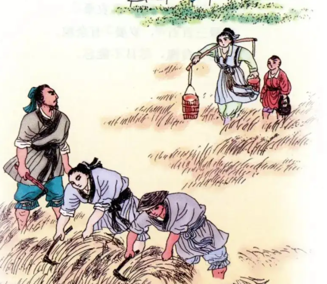 田家少闲月,五月人倍忙。 夜来南风起,小麦覆陇黄。 妇姑荷箪食,童稚携壶浆。 相随饷田去,丁壮在南冈。 足蒸暑土气,背灼炎天光。 力尽不知热,但惜夏日长。 复有贫妇人,抱子在其旁。 右手秉遗穗,左臂悬敝筐。 听其相顾言,闻者为悲伤。 家田输税尽,拾此充饥肠。 今我何功德,曾不事农桑。 吏禄三百石,岁晏有余粮。 念此私自愧,尽日不能忘。