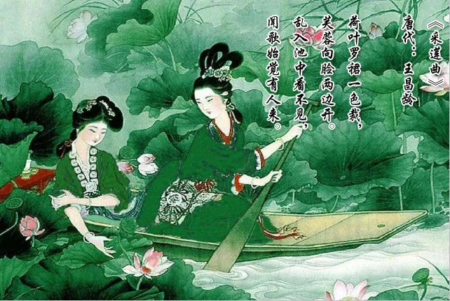荷叶罗裙一色裁,芙蓉向脸两边开。