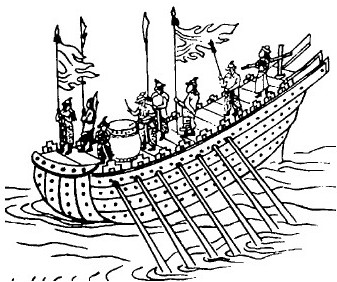 三国时代称运兵船为走舸,也类似于后汉时代的露桡。《三国志·周瑜传》提到,黄盖“豫备走舸,各系大船后”,黄盖放船引火后,就是改乘这些走舸。值得一提的是在正史中,《三国志》是第一个用舸这个字,更是唯一提到走舸这名词的正史。